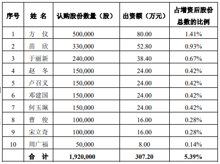 2007年11月25日,10名自然人与东方园林及全体股东共同签订增资协议(共计307.2万),以现金认购公司发行的192万股股份。