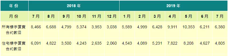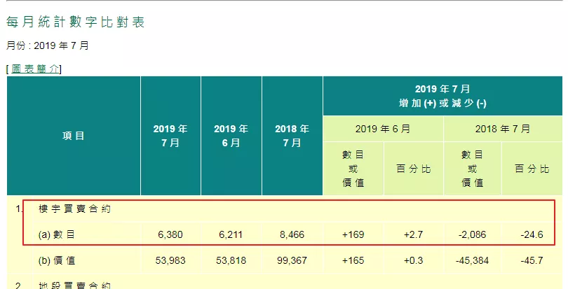 下滑是从6月开始的。六月份送交该处注册的所有种类楼宇买卖合约共6211份,再往前一个月,楼宇买卖注册量高达10353宗。