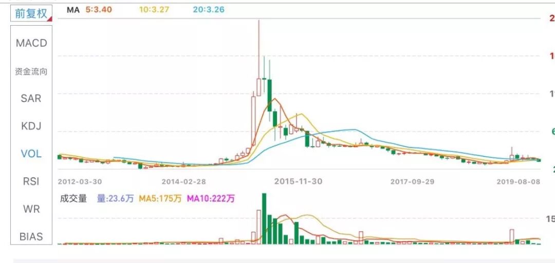 由徐翔母亲郑素贞持股的文峰股份股价较“辉煌”时也是一落千丈,至今已累计跌去近9成。2015年4月,公司股价飙至历史最高的20.81元/股,此后3年一直徘徊于3~8元/股,截至今日收盘,仅收报3.08元/股。
