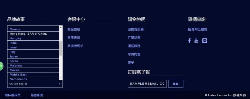 8月12日下午,有网友发现雅诗兰黛中国官网上标明中国香港中国台湾,但是在法国等国外官网把中国、香港、台湾都列入国家,甚至有些国家的官网并没有中国的显示。
