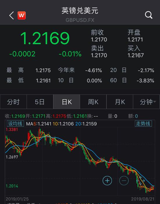据Wind数据,英镑兑美元汇率在年初短期反弹后便呈震荡下挫态势。8月9日盘中一度跌至1.2024的年内低点。