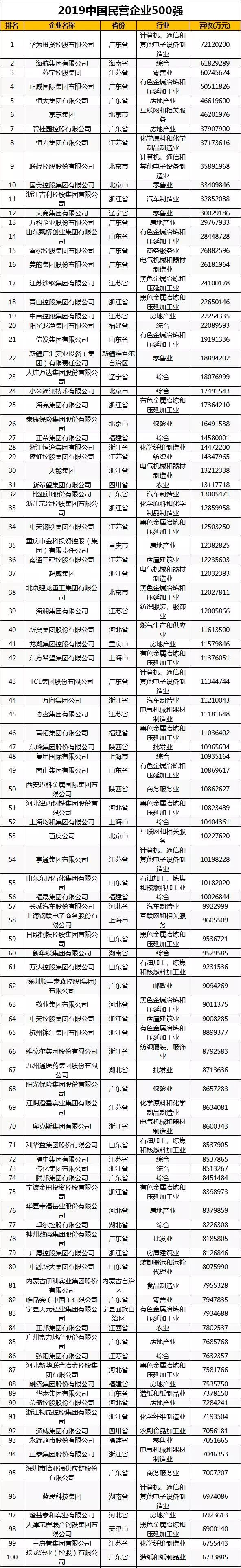 比如,十强企业中,广东一省占了4家,分别为华为投资控股有限公司、正威国际集团有限公司、恒大集团有限公司和碧桂园控股有限公司。江苏亦有2家企业进入十强,分别为苏宁控股集团和恒力集团有限公司。