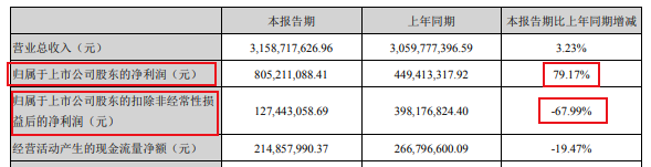 近日,网宿科技(300017.SZ)发布2019年半年报,公司营收31.6亿元,同比增长3.23%;归属于上市公司股东的净利润为8.05亿元,同比增长79.2%。营收利润双增,半年报发布后,与此前9.06元/股的低点相比,股价最高达到10.43元/股,涨幅15.12%。截至26日,收盘价为9.78元/股,总市值237.95亿元。 虽然网宿科技半年报业绩暴涨,但扣非净利润却是反向下滑的。 野马财经(微信公号:ymcj8686)在财报中关注到, 网宿科技扣非净利润仅为1.27亿元,同比减少68%。