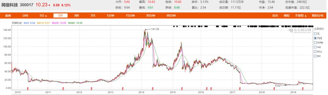 曾经以134元/股收盘的“超级牛股”网宿科技,一度超过茅台,登顶“第一高价股”。上市十年,股价几经跌宕起伏。如今,它已经从“百元股”跌成“十元股”。