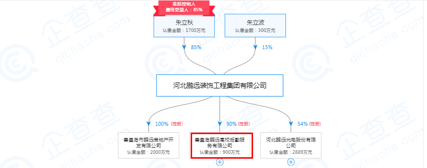 公开资料显示,鹏远公寓背后公司为秦皇岛鹏远高校后勤服务有限公司(下称鹏远后勤公司)。法定代表人为朱立秋,持有该公司90%的股份。据报道,朱立秋现任河北鹏远装饰工程集团(下称鹏远集团)董事长。