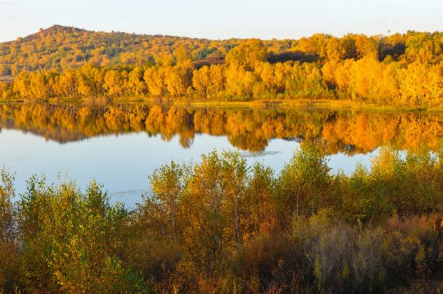 每到春秋时节,桃山湖湖面上时常弥漫着飘渺的雾气,宛若仙境,尤其到了秋天,四周一片金黄,美得醉人。被称为“塞北香格里拉”,实至名归。