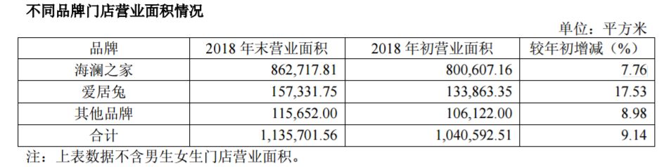 近几年,爱居兔保持了约300家门店/年的扩张速度,其实在2018年,爱居兔还在扩张。海澜之家2018年年报显示,截至当年年末,爱居兔营业面积15.7万平方米,较年初增长17.53%,超过主品牌海澜之家当年营业面积的增长速度7.76%。
