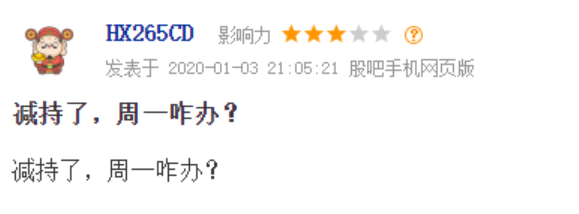 尽管拟减持数量不多,但还是有投资者表露了顾虑。一位投资者表示,“减持了,周一咋办?”还有投资者表示,“星期一是不是该跑了”。