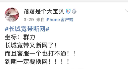 然而,3月30日,《中国消费者报》在微博平台看到,多地长城宽带消费者仍集中反映遭遇断网,客服电话打不通。