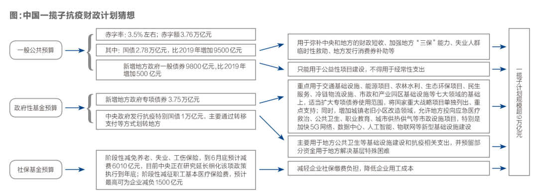 2020年政府发债规模将超过8.5万亿元,减税降费规模达2.5万亿元;全年抗疫纾困一揽子财政计划总规模超9万亿元,约为2019年中国名义GDP的9%
