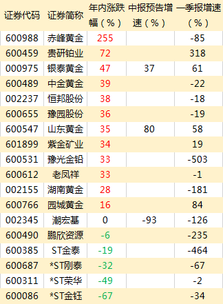 A股黄金股业绩靓丽