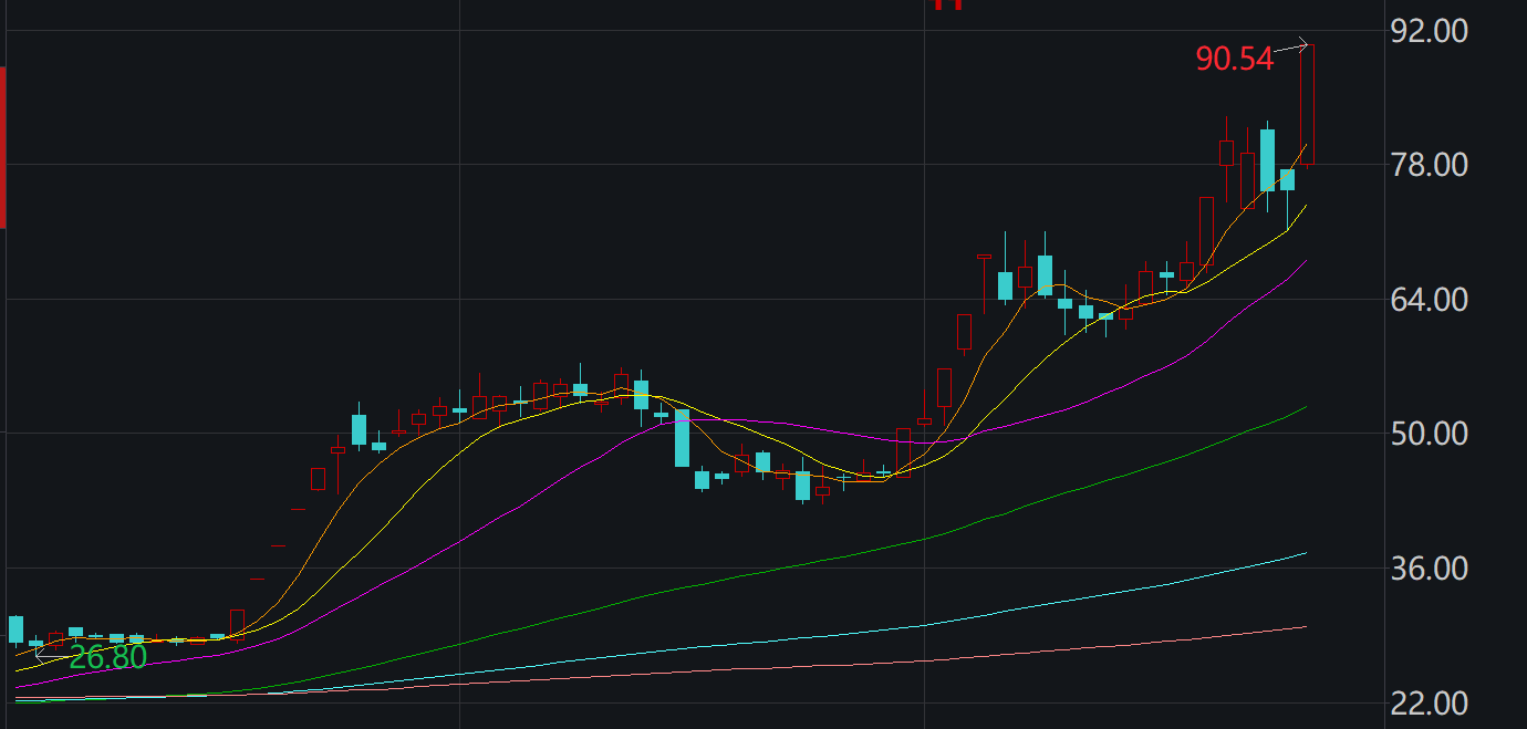今年5月,乐歌股份涨势初现,股价上涨32.95%;6月连续5个涨停板将累计涨幅拉升至89.28%。