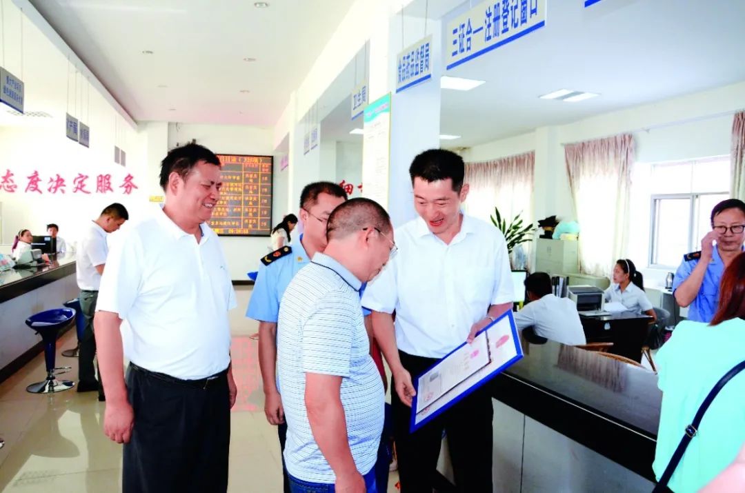 审计署派驻会昌县扶贫干部(右一)在县政务服务中心调研