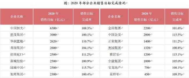 房企业绩完成度方面,从公布年度销售目标的25家代表企业来看,2020年房企销售目标完成率总体较好,均值为106.1%。其中,绿城、雅居乐、招商、金茂、华润等企业的销售目标完成率均值110%以上。
