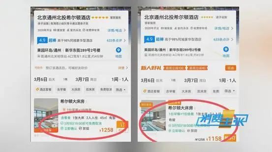 消费者 张先生:“因为之前订过那个酒店,我就说再搜一下,(结果)一模一样的酒店,一模一样的页面,搜出来以后价钱差100元钱。”