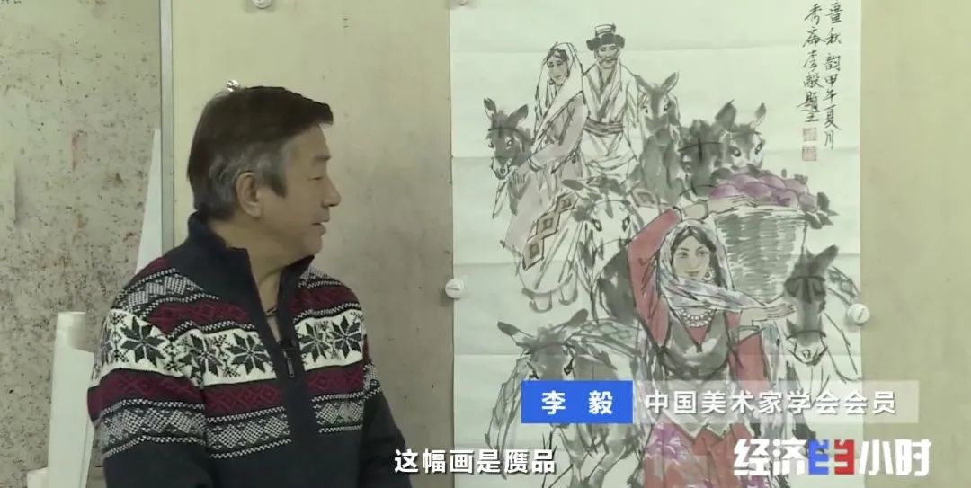 另一幅标称为当代画家、美协会员李毅的《南疆秋韵图》,被记者以500多元的价格拍到。同样,我们也请李毅本人来鉴定了真伪。