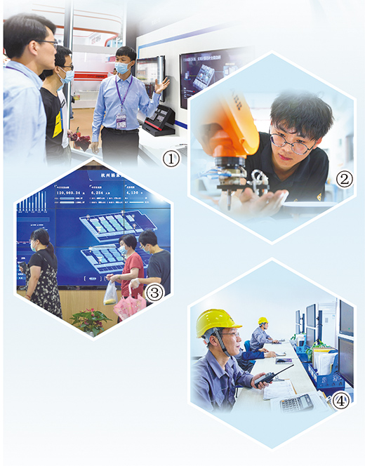 图④:在浙江某化工生产基地,工作人员远程控制和监控硅油产品的生产流程。