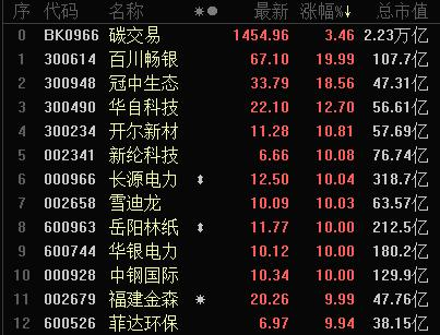 近期碳交易概念股再一次出现了疯狂上涨: