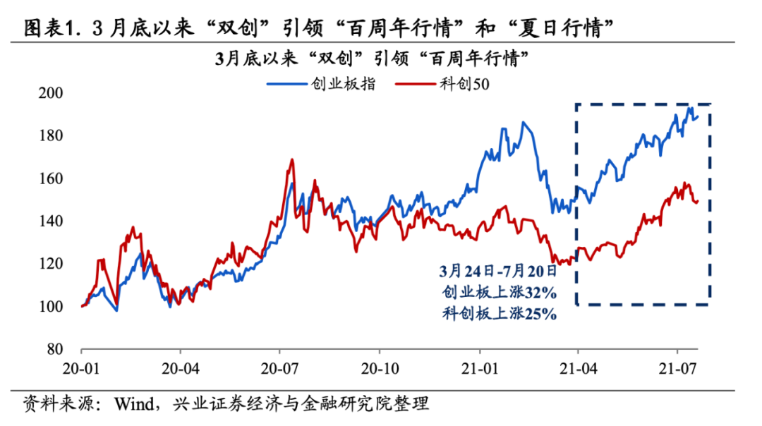 双创板块的制度红利,是本轮“未来核心资产”长牛的压舱石。双创板块已经率先实施注册制且仍不断完善,IPO审查更加重视“科创”属性,落实“建制度、不干预、零容忍”。此外,科创板还放松了再融资、解禁减持,有望成为下半年行情催化。2023年7月科创板将逐步迎来3年期大股东解禁,潜在的资本运作值得关注,此前华兴源创科创板首例重大资产重组的梳理见正文
