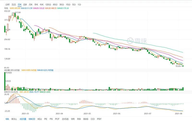 这本人之常情,毕竟股价从417跌倒如今的95。