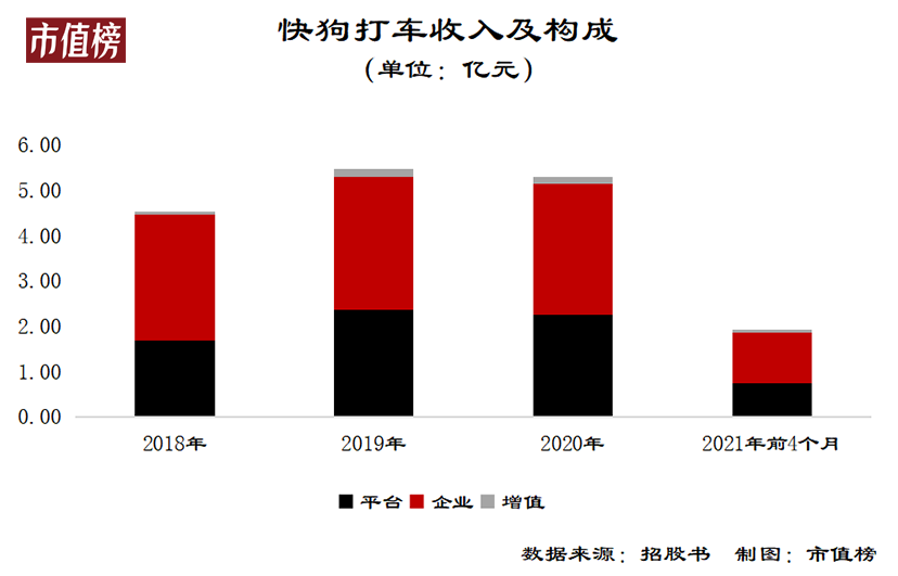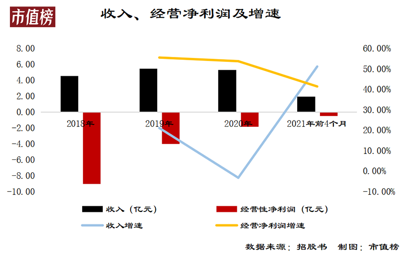 2019年,快狗打车的营业收入有21%的增幅,2020年受疫情的影响,收入缩水3.3%。2021年前4个月,收入增加50.8%。