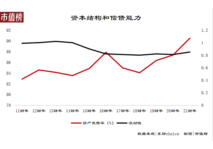 把时间拉长来看,联想集团的趋势是资产负债率变高,流动性变差。