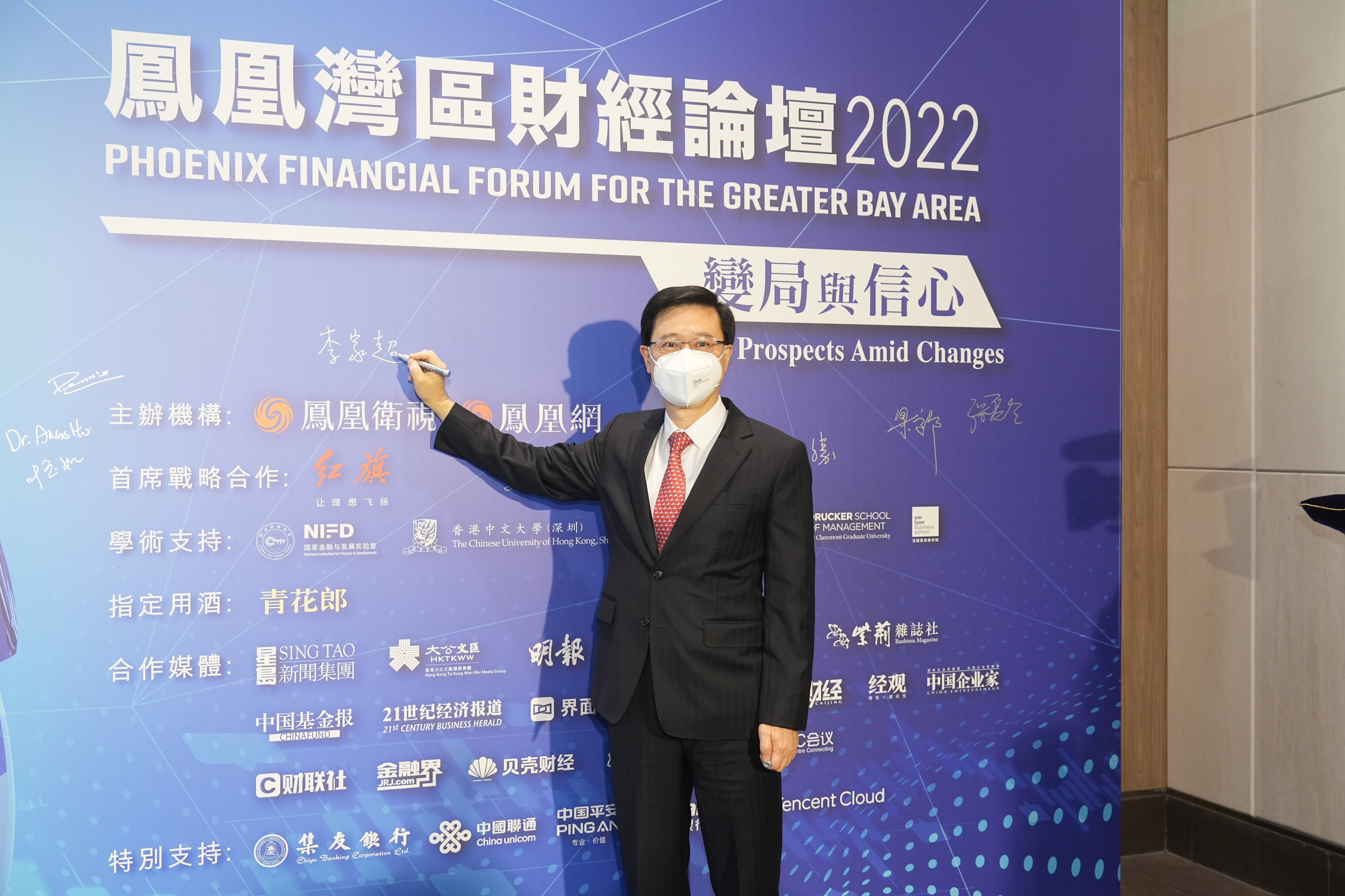 9月21-22日,由凤凰卫视、凤凰网联合多方发起,并获得十余家学术机构的支持的“凤凰湾区财经论坛2022”在香港、内地同步举行。香港特别行政区行政长官李家超在“凤凰湾区财经论坛2022”签到。