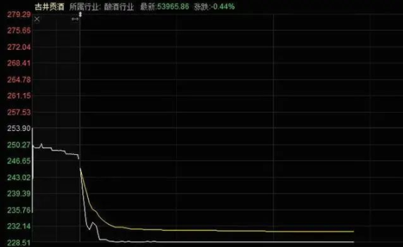 10月17日,古井贡酒开盘后直线下挫,不到10分钟触及跌停板。截至发文,该公司股价为228.51元,总市值为1208亿元。