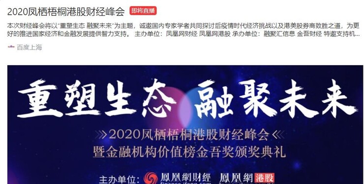 【百度APP直播回放】2020凤栖梧桐财经峰会