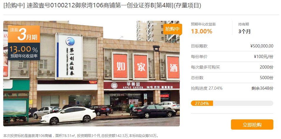 菜导通过查阅爱房筹平台上发布的标的信息发现,目前处于筹资阶段都是一些广州、佛山的停车厂物业或者商铺类商业地产。
