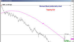 美银美林(BofA Merrill)周二(5月19日)在一份最新的技术分析中指出,德国国债收益率出现触顶迹象,欧元/美元的上升趋势恐怕将遭遇“拦路虎”。