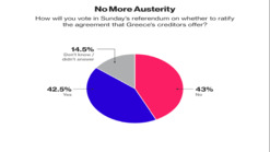 据希腊内政部统计:在已经开出的95.00%公投选票中,61.32%的希腊选民反对债权人改革计划(投“No”票),改革建议支持者仅有38.68%。 这意味着希腊将不会接受欧盟委员会、欧洲央行和国际货币基金组织2015年6月25日在欧元区峰会上提出、由两部分文件共同组成的谈判协议条款。这也意味着“希腊退欧”在某种程度上将进入备考程序。