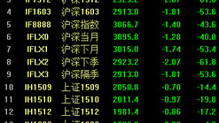 股指期货全线走低,沪深1509跌1.3%,上证1509跌0.7%,中证1509跌2%。