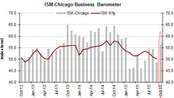 原油宽幅震荡,建议观望。 美国10月18日当周EIA烟油库存增加284.7万桶,超出预期的增加250万桶,原油收跌。 【美元】由于12月加息预期的增强,美元指数连续上涨,压制原油价格。 【OPEC】OPEC成员国仍表示希望提高原油产量,使得原油产量仍处于高位,供应过剩的局面并未得到缓解,将压制原油价格。 【综述】原油产量不减反增,供应过剩依然严峻。由于巴西石油工人罢工加上利比亚港口停运,使得原油价格大幅反弹,由于美国原油库存的超预期增长导致油价大幅下跌。而美元指数的上涨成为原油下跌的推手。