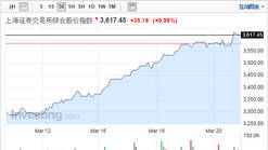 中国股市沪综指周五(3月20日)收升1%,近七年首次站上3,600点,并为连续第八日收升;本周涨幅7.3%创三个半月最佳单周表现。早盘股指高位震荡,午后券商板块集体大涨,带动股指摆脱盘局迅速创出新高。