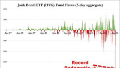 上周市场发生了一些之前从未发生的事情。股市交易所交易基金资金外流激增,高收益的交易所交易基金在过去几天遭赎出36亿美元,为历史最大遭赎出规模的近两倍。