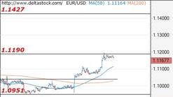 欧元/美元小时图高位震荡交投,1.1148有支撑,仍关注进一步走高可能。