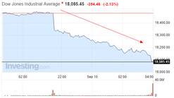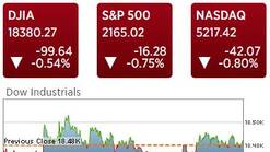 周五(9月9日),标普500指数低开16.28点,跌幅0.75%,报2165.02点;道琼斯工业平均指数低开99.64点,跌幅0.54%,报18380.27点;纳斯达克综合指数低开42.07点,跌幅0.80%,报5217.42点。