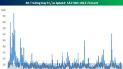 Bespoke Investment Group联合创始人Paul Hickey称,在截至本周三的40个交易日内,标普500指数最高收盘价和最低收盘价之间的差距仅为1.75%,这是标普500指数历史上首次出现。