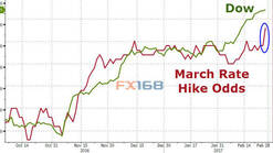 FX168财经报社(香港)讯 尽管美联储(FED)一直强烈呼吁加息,但3月加息概率近几周来一直保持在1/3附近,但周二(2月28日)该概率突出飙涨,一度触及50%,路透称之为“完全出于意外”。