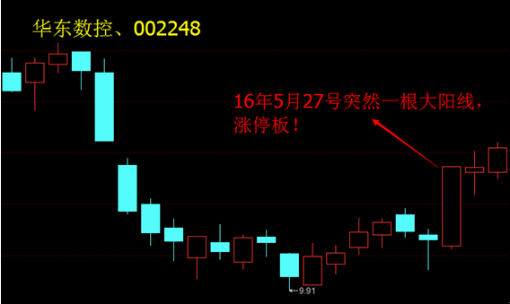 案例2:华东数控,连续两日下跌,第三日直接涨停,开启一轮新的行情。