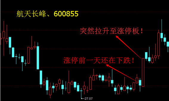 案例1:航天长峰前一天还在下跌,第二天直接涨停。