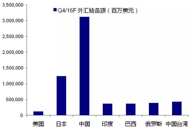 从一般意义上去理解,外汇储备越多,说明对应的外币资产越多,那么,本币的稳定性就越好。但事实上新兴经济体的外汇储备并不算少,尤其是金砖四国,如中国的外汇储备全球第一,俄罗斯、巴西和印度的外汇储备在全球排名都在前十位置,但名义汇率都大幅低于实际汇率。即便像中国台湾这样一个外汇储备全球排名第三的地区(4340亿美元),名义汇率也是超贬的。