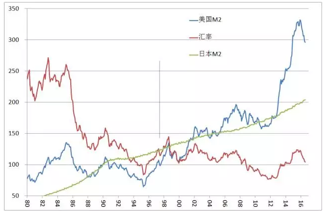 因此,决定汇率变化的最主要因素应该是货币供应量,就像通胀是货币现象、房价是货币现象一样,汇率也是货币现象,货币一旦超发了,其能量总会释放出来,要么通胀,要么资产泡沫,要么货币贬值。只是货币超发的过程未必会通胀,也有可能通缩;未必会引发资产价格泡沫,或许还会出现资产价格的低估;不一定马上出现货币贬值,也有可能升值。但从长期看,货币超发肯定会导致资产泡沫、通胀和货币贬值。